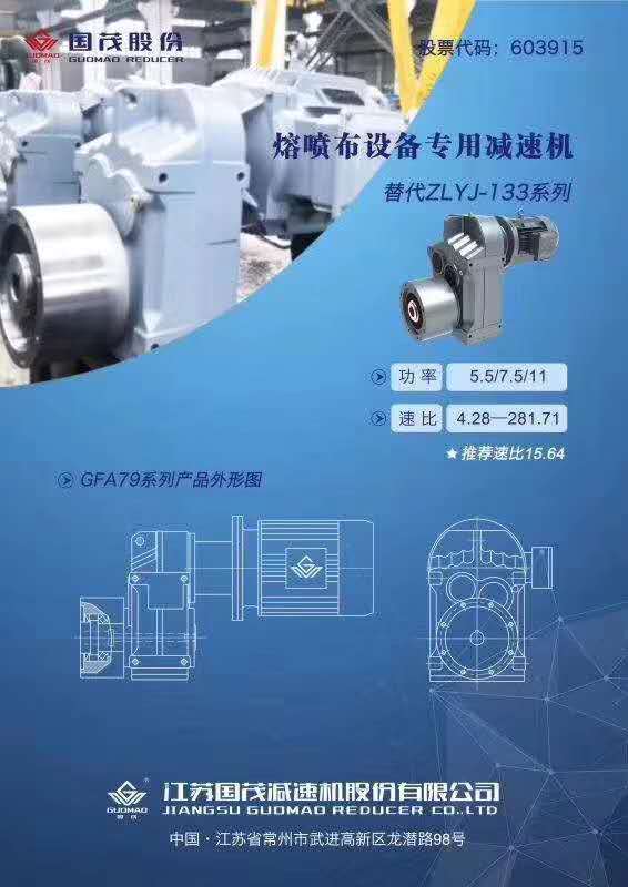 熔噴布擠出機(jī)減速機(jī), 熔噴布專用減速機(jī),熔噴布設(shè)備專用減速機(jī),江蘇國茂減速機(jī),全國名牌,品質(zhì)保證,有合格證,替代ZLYJ-133系列,適用于50型熔噴布擠出機(jī)。聯(lián)系電話:13921098089
